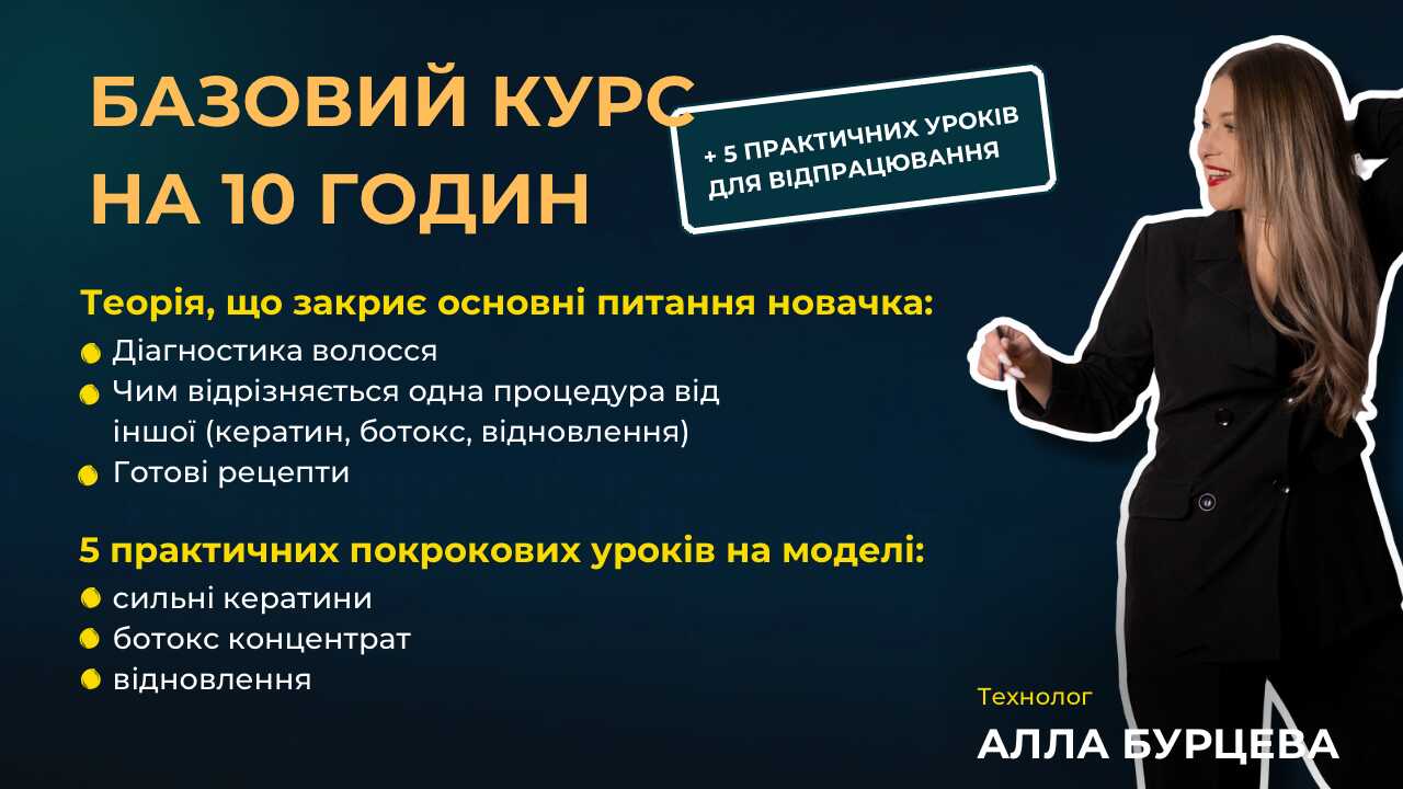БАЗОВИЙ КУРС ВИПРЯМЛЕННЯ І ВІДНОВЛЕННЯ ВОЛОССЯ ДЛЯ НОВАЧКІВ І ПРАКТИКУЮЧИХ МАЙСТРІВ